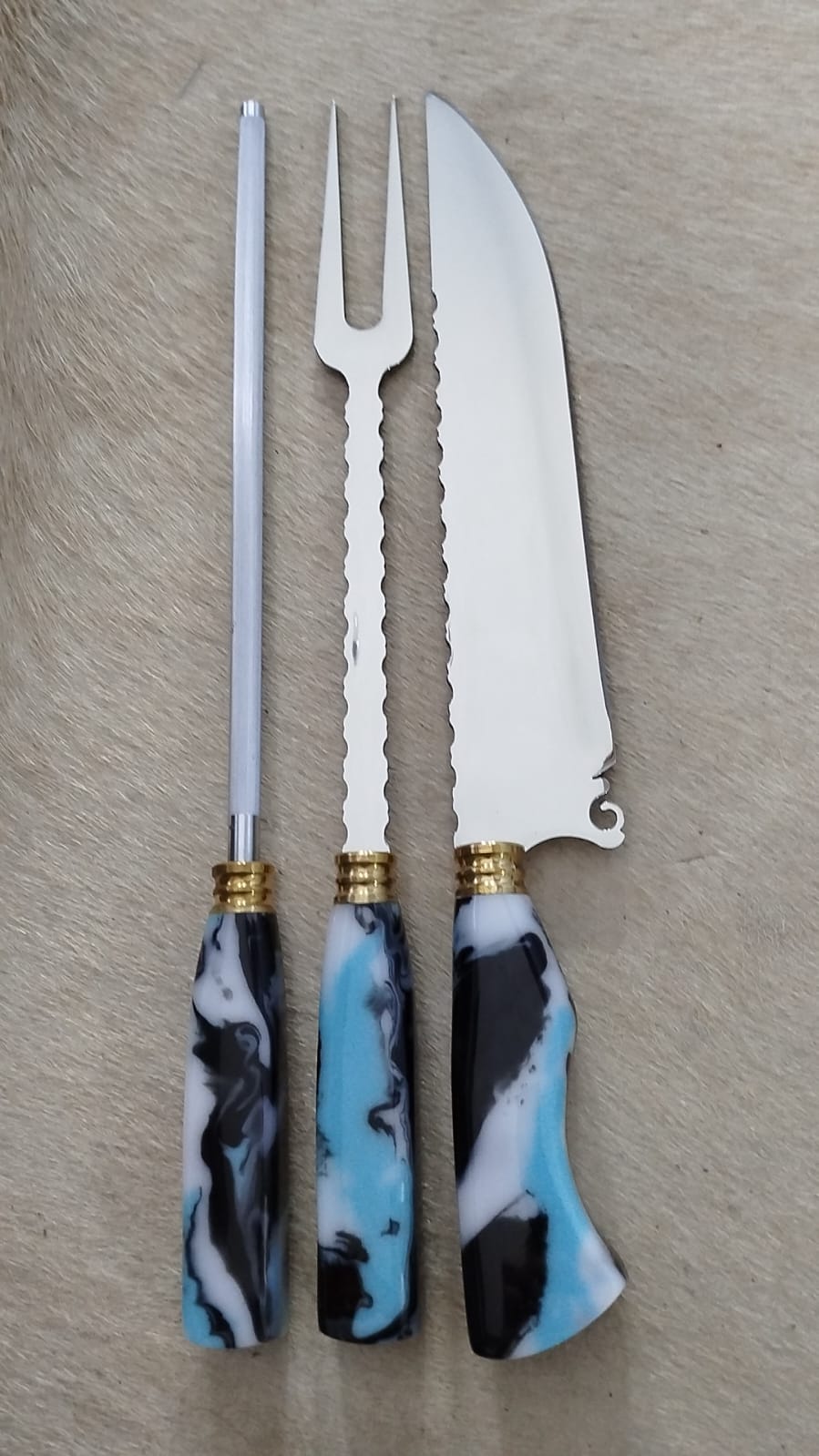 FACA E GARFO EM INOX 420c TEMPERADO E REVENIDO FAMOSO AÇO CIRÚRGICO