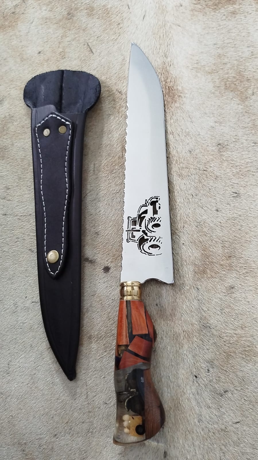 COM BAINHA DE COURO BOVINO, SE AJUSTA PERFEITAMENTE A LÂMINA.