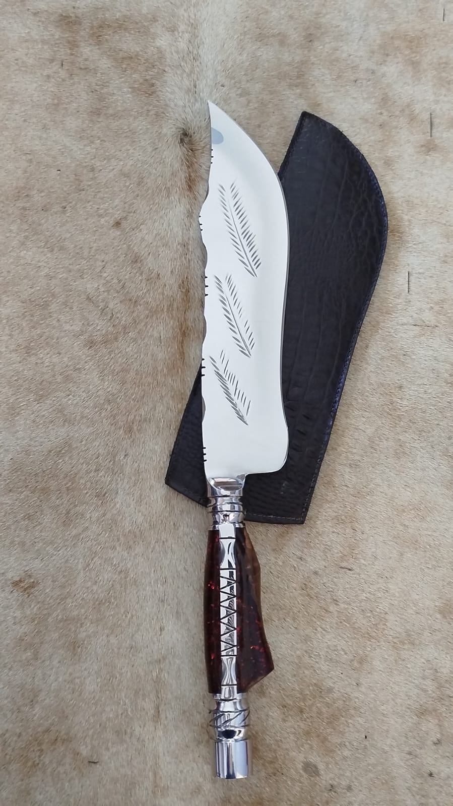 Bainha em couro bovino legítimo, toda trabalhada.