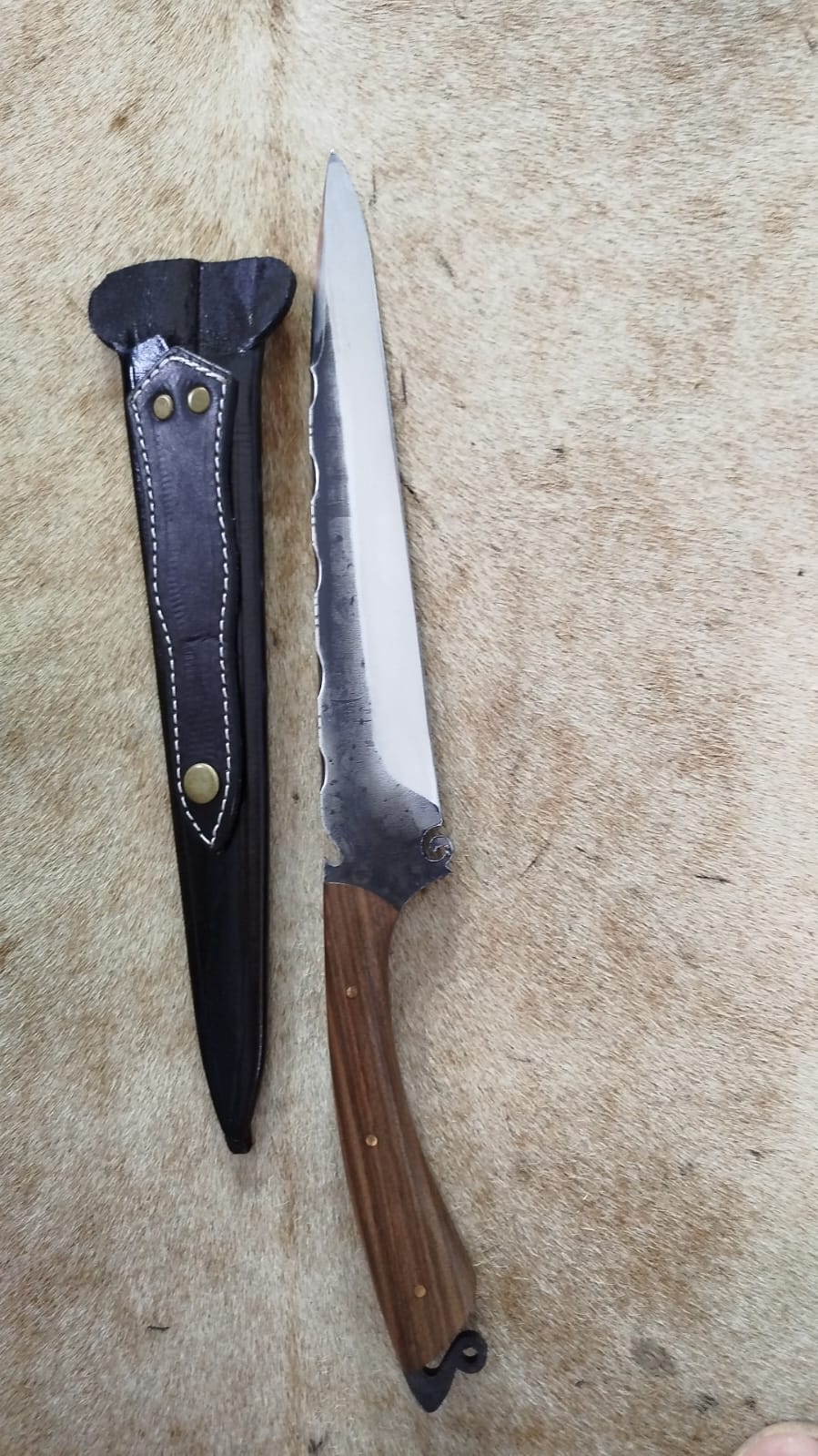 FACA JAVALIZEIRA, ARTESANAL, COM BAINHA DE COURO.