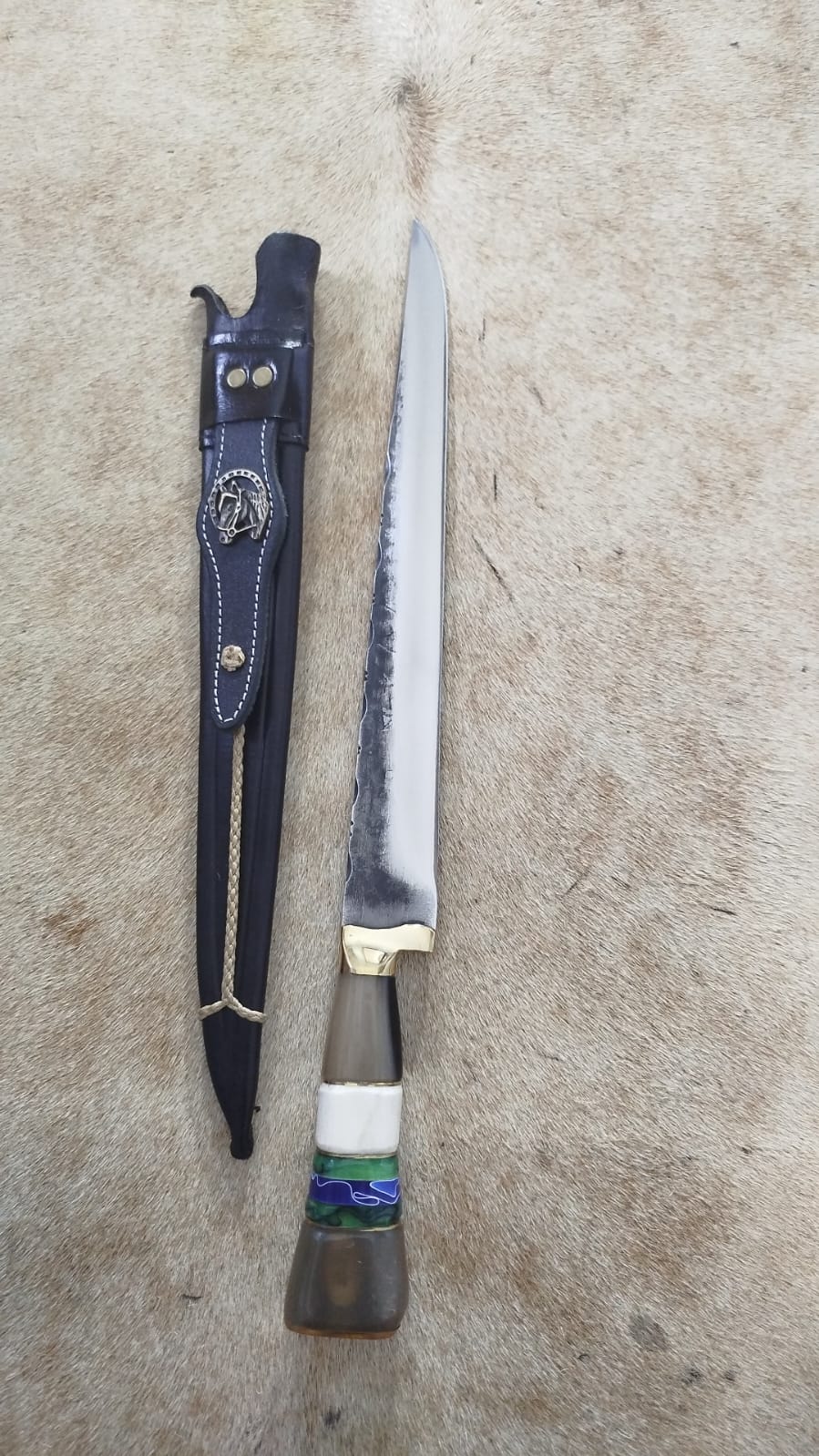 FACA JAVALIZEIRA, ARTESANAL, COM BAINHA DE COURO.