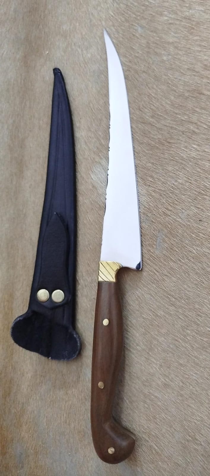 FACA DESOSSADEIRA ARTESANAL COM BAINHA DE COURO.