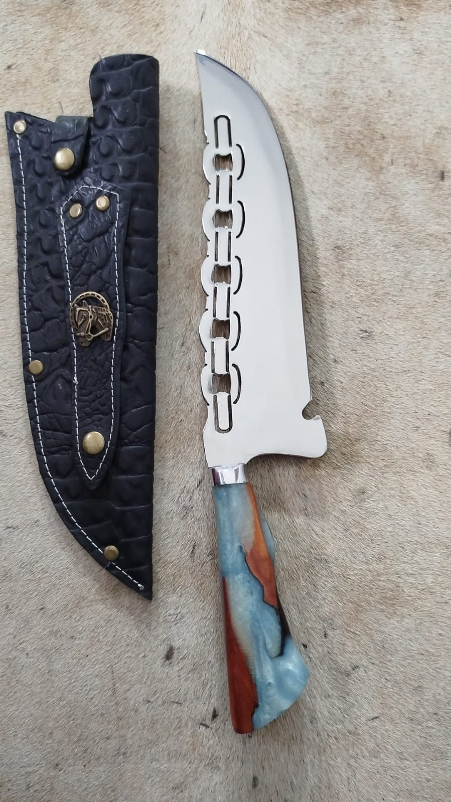 COM BAINHA DE COURO BOVINO, SE AJUSTA PERFEITAMENTE A LÂMINA.