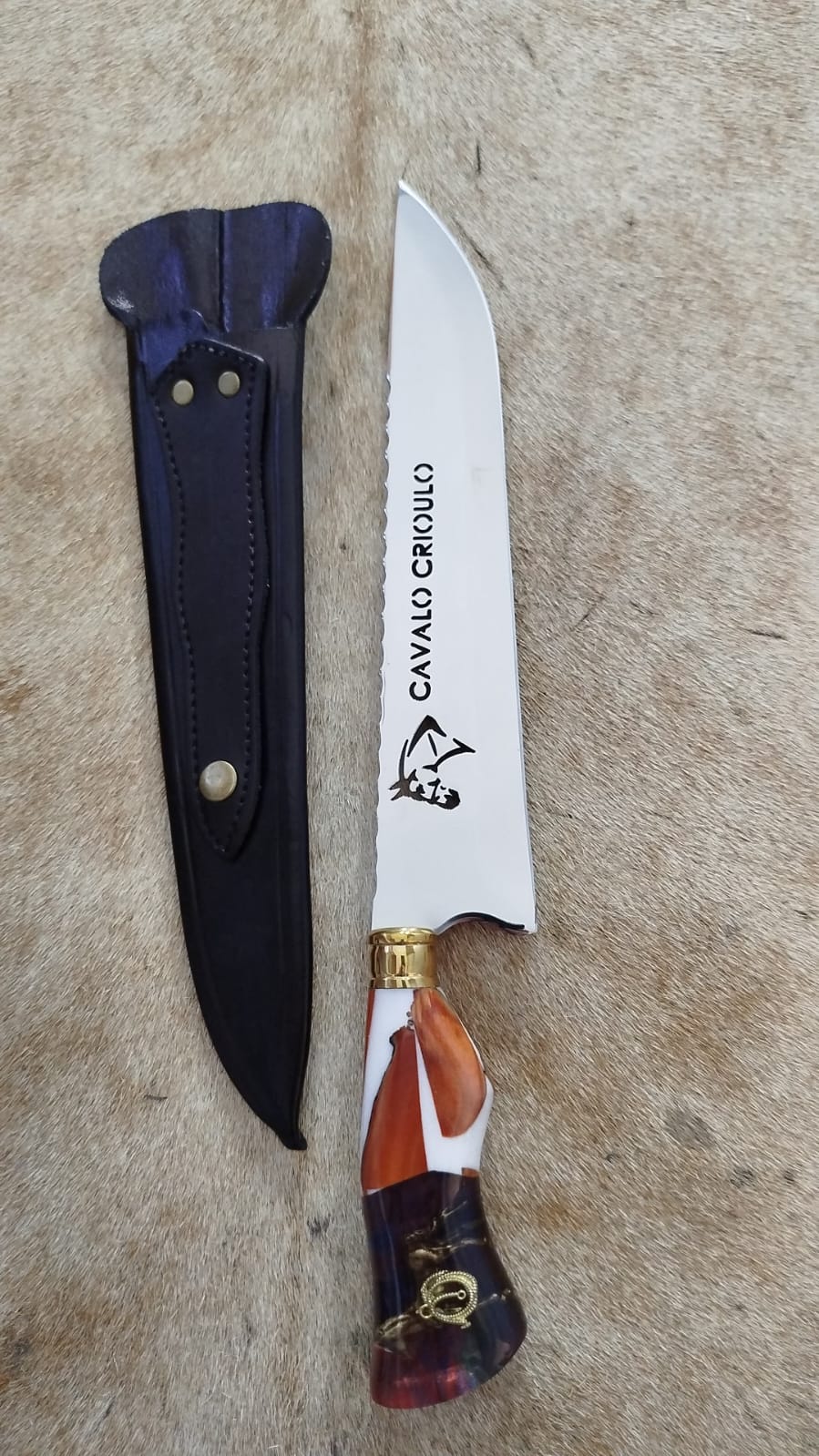 COM BAINHA DE COURO BOVINO, SE AJUSTA PERFEITAMENTE A LÂMINA.